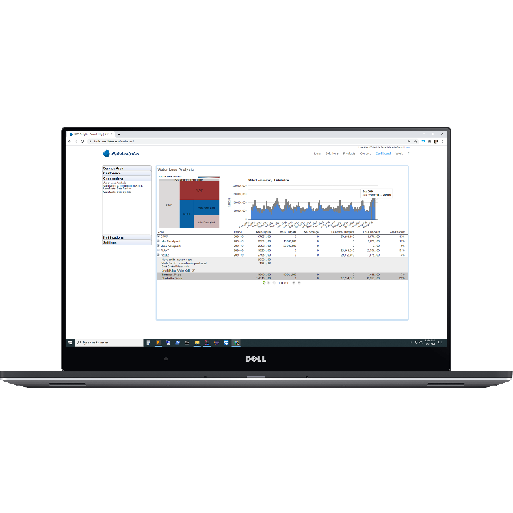Part of a comprehensive approach to water loss management, H2O Analytics taps into various sources of utility data to monitor water loss rates in near-real-time. Combining information from your SCADA, AMI and GIS platforms, it provides utility management with visibility into loss rates at the zone level, and highlights changing loss patterns as they happen, instead of weeks or months later. Use our mobile app to keep track of leak repair history and other non-revenue water usage.
